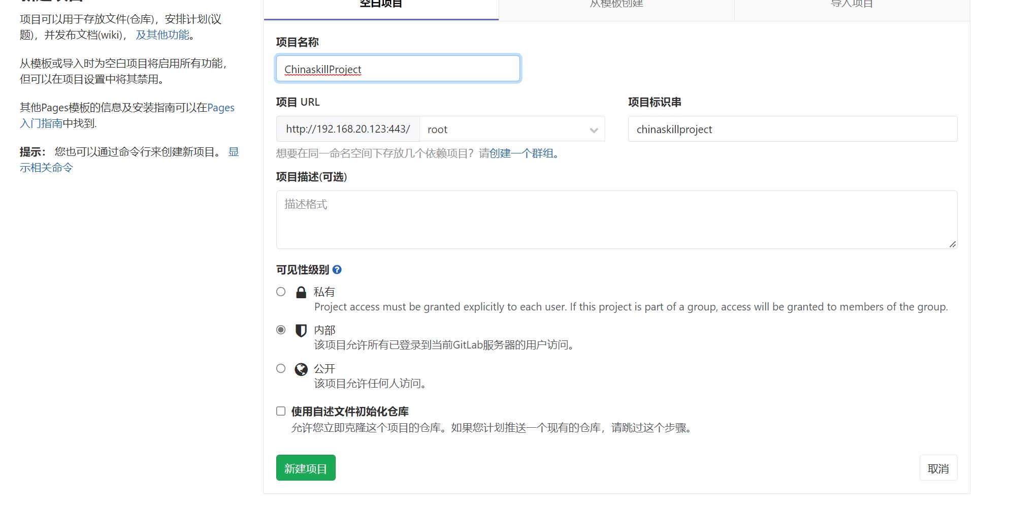 git clone http://192.168.20.132:443/root/chinaskillproject.git
