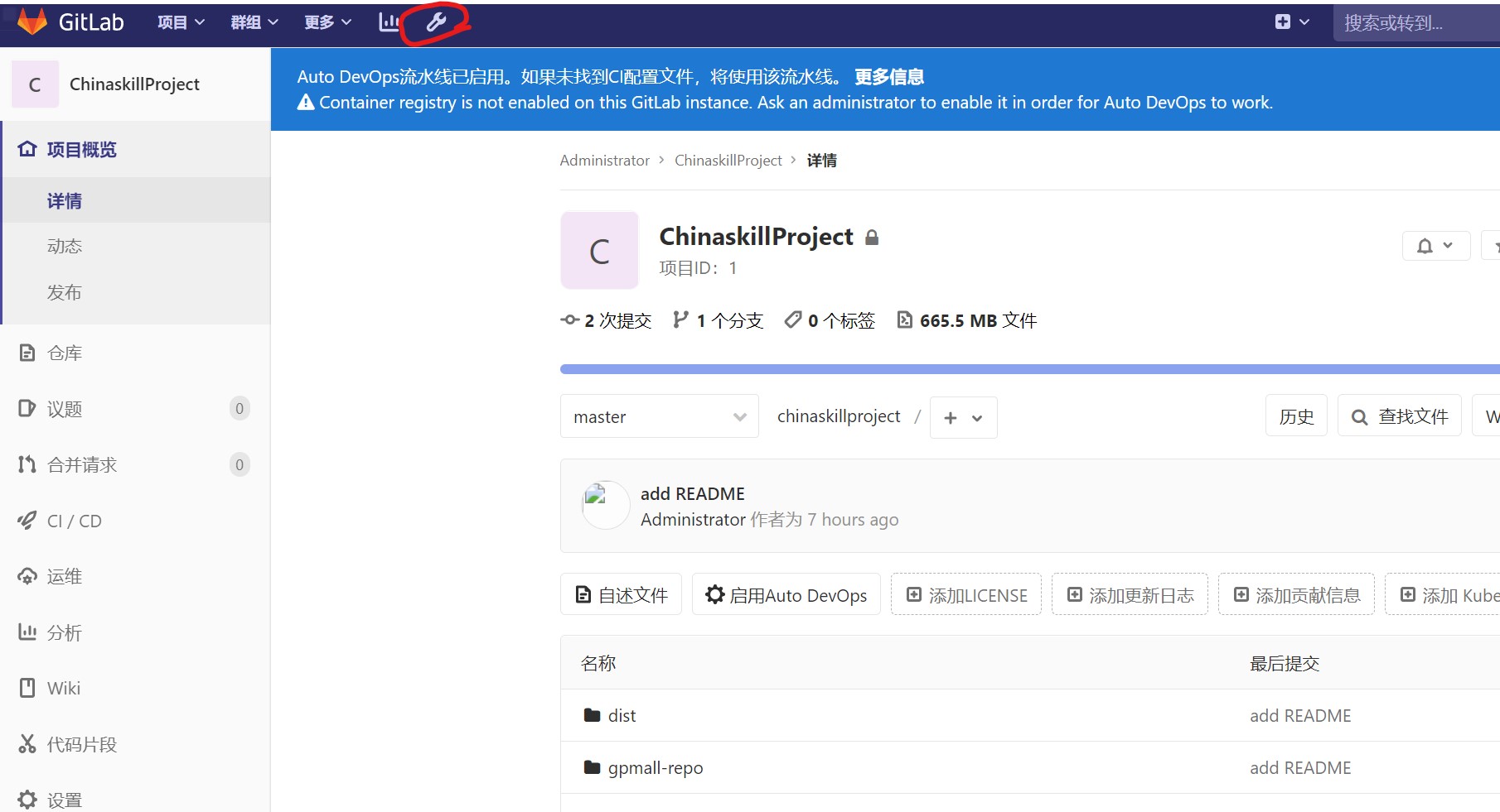 将/opt/ChinaskillProject 中的代码上传到ChinaskillProject 项目中。